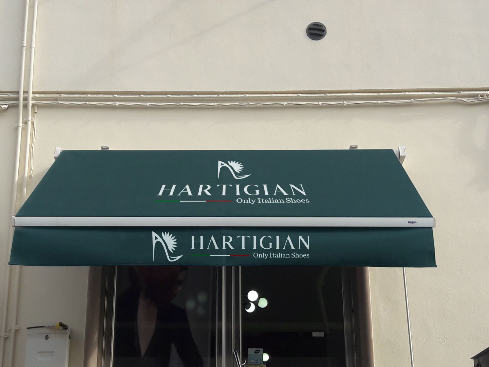 Proposta di logo e comunicazione per un negozio di calzature, Hartigian. Come si può intuire dal nome, Hartigian vende scarpe realizzate da artigiani italiani. Per questo ho scelto di inserire una piccola bandiera italiana ad accompagnamento del nome scritto in caratteri eleganti accompagnati da un colore verde richiesto esplicitamente dai proprietari.